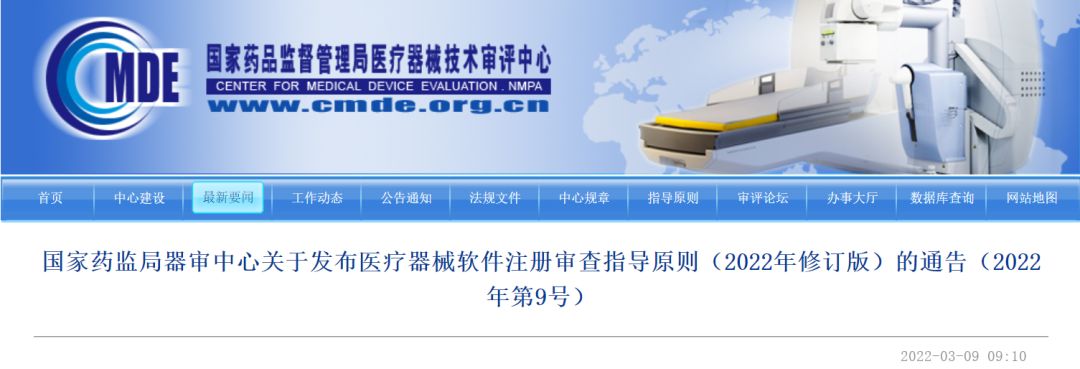 國家藥監(jiān)局器審中心關(guān)于發(fā)布醫(yī)療器械軟件注冊審查指導(dǎo)原則(2022年修訂版)的通告(2022年第9號)