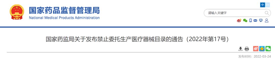 為加強(qiáng)醫(yī)療器械生產(chǎn)監(jiān)管,保障醫(yī)療器械安全、有效,根據(jù)《醫(yī)療器械監(jiān)督管理?xiàng)l例》(國(guó)務(wù)院令第739號(hào)),國(guó)家藥品監(jiān)督管理局組織修訂了《禁止委托生產(chǎn)醫(yī)療器械目錄》,現(xiàn)予發(fā)布,自2022年5月1日起施行,原國(guó)家食品藥品監(jiān)督管理總局《關(guān)于發(fā)布禁止委托生產(chǎn)醫(yī)療器械目錄的通告》(2014年第18號(hào))同時(shí)廢止。特此通告。