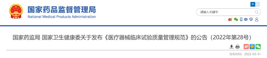 為深化醫(yī)療器械審評審批制度改革,加強醫(yī)療器械臨床試驗管理,根據(jù)《醫(yī)療器械監(jiān)督管理條例》(國務院令第739號)及《醫(yī)療器械注冊與備案管理辦法》(市場監(jiān)管總局令第47號)、《體外診斷試劑注冊與備案管理辦法》(市場監(jiān)管總局令第48號),國家藥品監(jiān)督管理局會同國家衛(wèi)生健康委員會組織修訂了《醫(yī)療器械臨床試驗質(zhì)量管理規(guī)范》,現(xiàn)予發(fā)布,自2022年5月1日起施行。