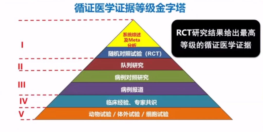 李衛(wèi)教授表示,根據(jù)循證醫(yī)學證據(jù)級別金字塔中最高等級的I級證據(jù)顯示,基于良好設計的隨機對照試驗(randomized controlled trial,RCT)最能夠評價器械的安全性和有效性。