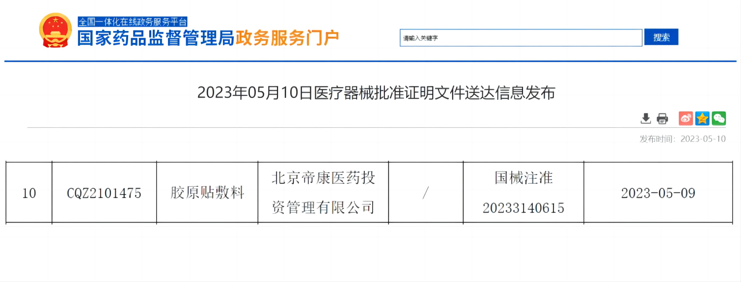 2023年5月9日,奧泰康北京CDMO中心取得「首張」國家藥監(jiān)局批準(zhǔn)的三類醫(yī)療器械注冊證(國械注準(zhǔn)20233140615),系全國首個(gè)以細(xì)胞外基質(zhì)來源的膠原蛋白為原料制備的三類膠原貼敷料。此項(xiàng)目是北京CDMO中心基于“十三五”國家重點(diǎn)研發(fā)計(jì)劃項(xiàng)目,在MAH制度下,與湖北恒安芙林藥業(yè)股份有限公司戰(zhàn)略合作完成涵蓋市場準(zhǔn)入全流程業(yè)務(wù)的醫(yī)美類項(xiàng)目,也是器械CRO/CDMO行業(yè)受托研發(fā)誕生的全國首個(gè)三類醫(yī)療器械注冊證,具有里程碑意義。