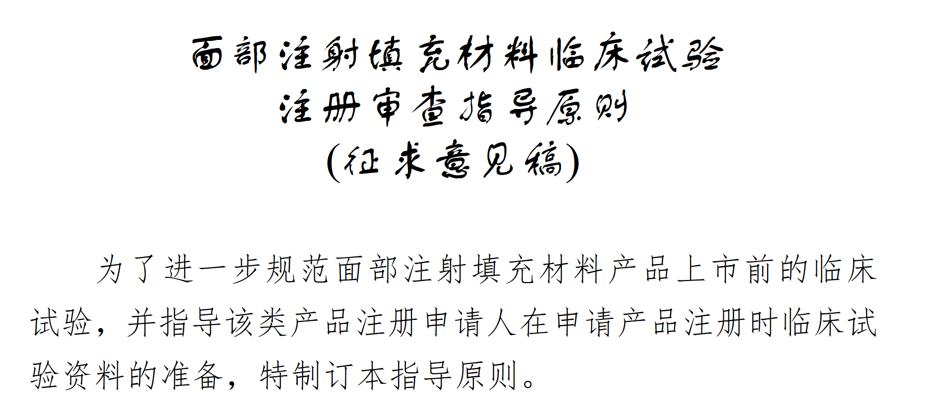 為進(jìn)一步規(guī)范面部注射填充材料產(chǎn)品上市前的臨床試驗(yàn),國家藥監(jiān)局器審中心發(fā)布《面部注射填充材料臨床試驗(yàn)注冊審查指導(dǎo)原則(征求意見稿)》,針對不用材料面部注射產(chǎn)品臨床試驗(yàn)中的適用范圍、試驗(yàn)設(shè)計(jì)、臨床評價指標(biāo)、樣本量、入排標(biāo)準(zhǔn)等進(jìn)行了規(guī)范。