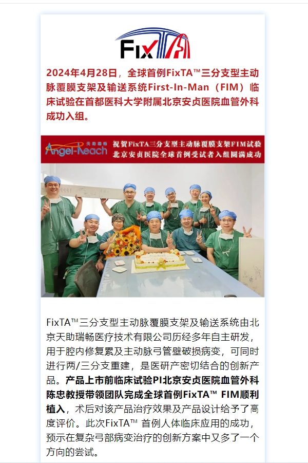 首先祝賀FixTA™三分支型主動(dòng)脈覆膜支架及輸送系統(tǒng)FIM臨床試驗(yàn)全球首例入組成功。
