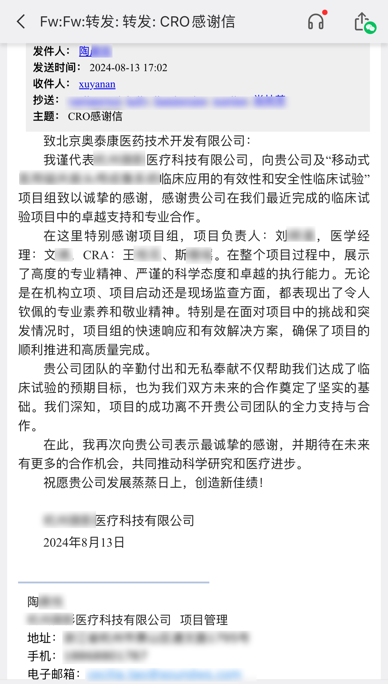 感恩有你,未來(lái)可期。在感恩節(jié)來(lái)臨之際,我們對(duì)合作伙伴的理解和支持表示感激,也對(duì)臨床項(xiàng)目組成員表示感恩,是大家每個(gè)人的共同努力使得項(xiàng)目得以順利開(kāi)展,愿我們的合作之旅,如同星辰大海,浩瀚無(wú)垠,充滿無(wú)限可能與希望。讓我們帶著這份感恩的心,繼續(xù)前行,共創(chuàng)更加輝煌的明天!