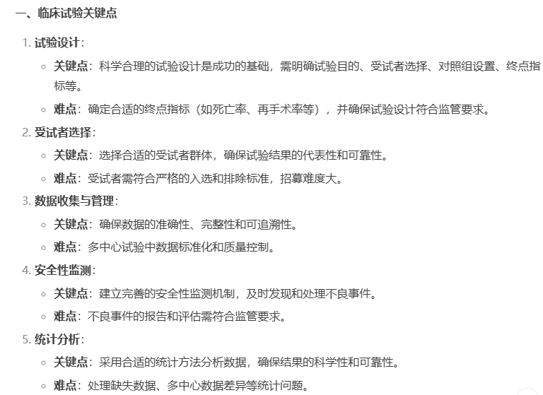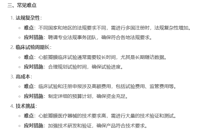 然而,每一項(xiàng)創(chuàng)新技術(shù)的臨床應(yīng)用,都離不開嚴(yán)謹(jǐn)?shù)呐R床試驗(yàn)驗(yàn)證。心臟瓣膜醫(yī)療器械的臨床試驗(yàn)和注冊(cè)申報(bào)是一個(gè)復(fù)雜且嚴(yán)格的過(guò)程,其中涉及的多個(gè)關(guān)鍵環(huán)節(jié)和潛在難點(diǎn),關(guān)于這些,看看當(dāng)下最熱門 AI工具deepseek怎么說(shuō)吧~