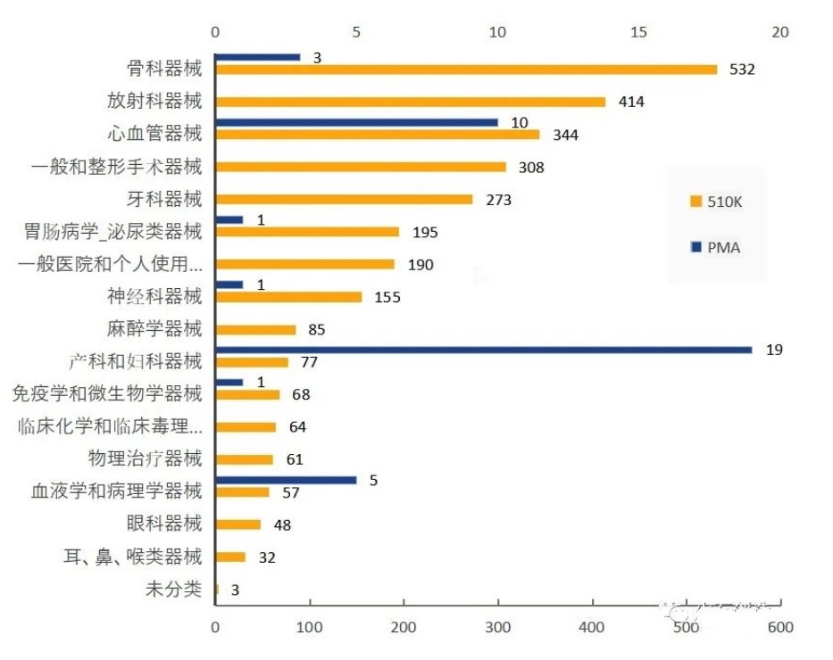 截止2021年1月4日,2020年美國FDA共批準2906個510(k)途徑的產(chǎn)品—心血管類產(chǎn)品數(shù)量名列前茅。